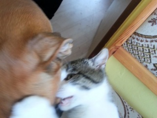 Cancourka jsme našli na ulici jako malé roztmilé kotě,které od nás už nikdy neodešlo.Dnes je z něho už velký kocour,který se dokáže celé dny toulat a pak si lehnout do vyžehleného prádla a hodiny spááát.Někdy příjde se šrámem po rvačce a pak se škádlí s naší boxerkou Maruškou a zlehka ji fackuje po čumáku a ona ho zato zlehka pokusuje a slintá.